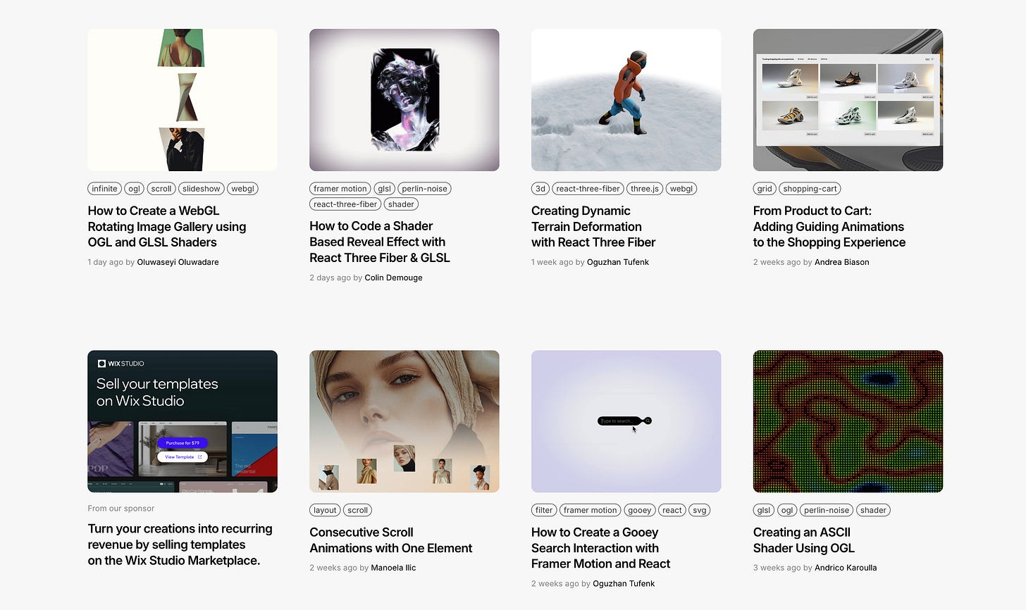 💠 Web Design Inspiration: Tympanus Codrops remains one of the most active sources of interactive web inspiration in 2024, consistently publishing high-quality demos spanning WebGL, 3D, animations and creative UI - their latest additions showcase cutting-edge techniques with React Three Fiber, Motion and WebGPU, all freely available under MIT license.